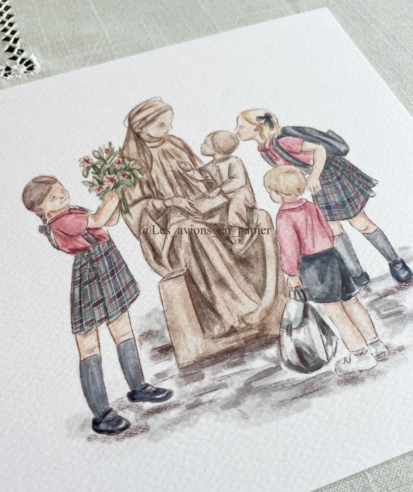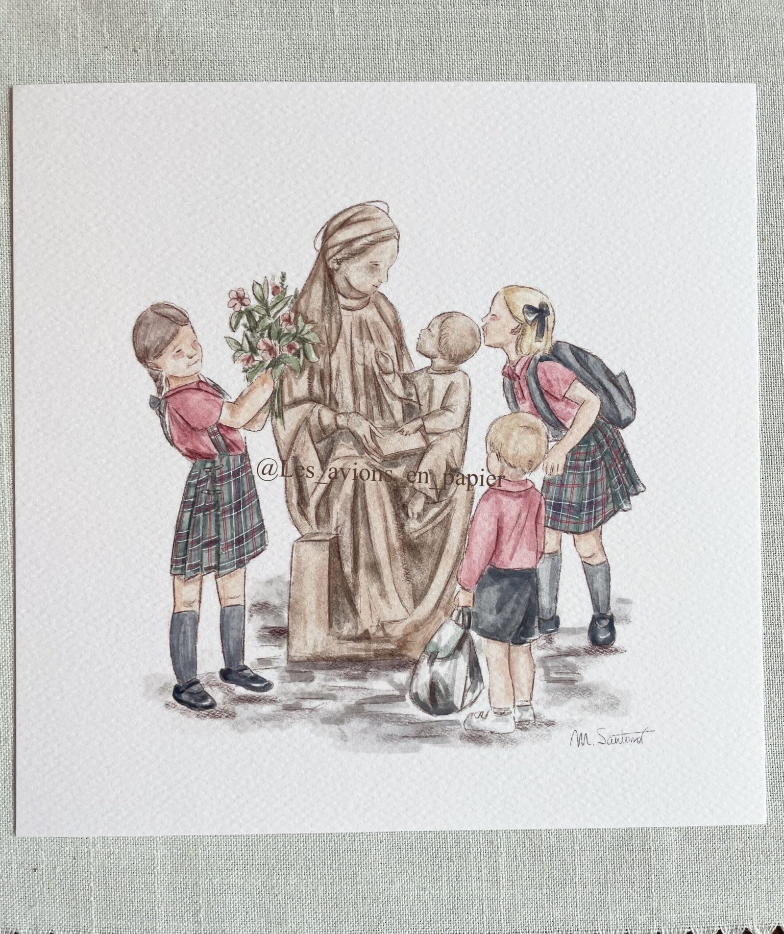 Lámina con ilustración de niñas con la virgen del colegio Canigó. Perfecto para decorar habitaciones, o para regalar en ocasiones especiales. Dale un toque de dulzura al cuarto de tus pequeños con esta lámina para enmarcar.