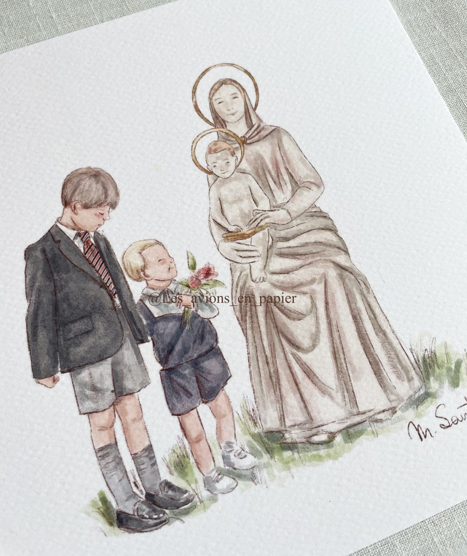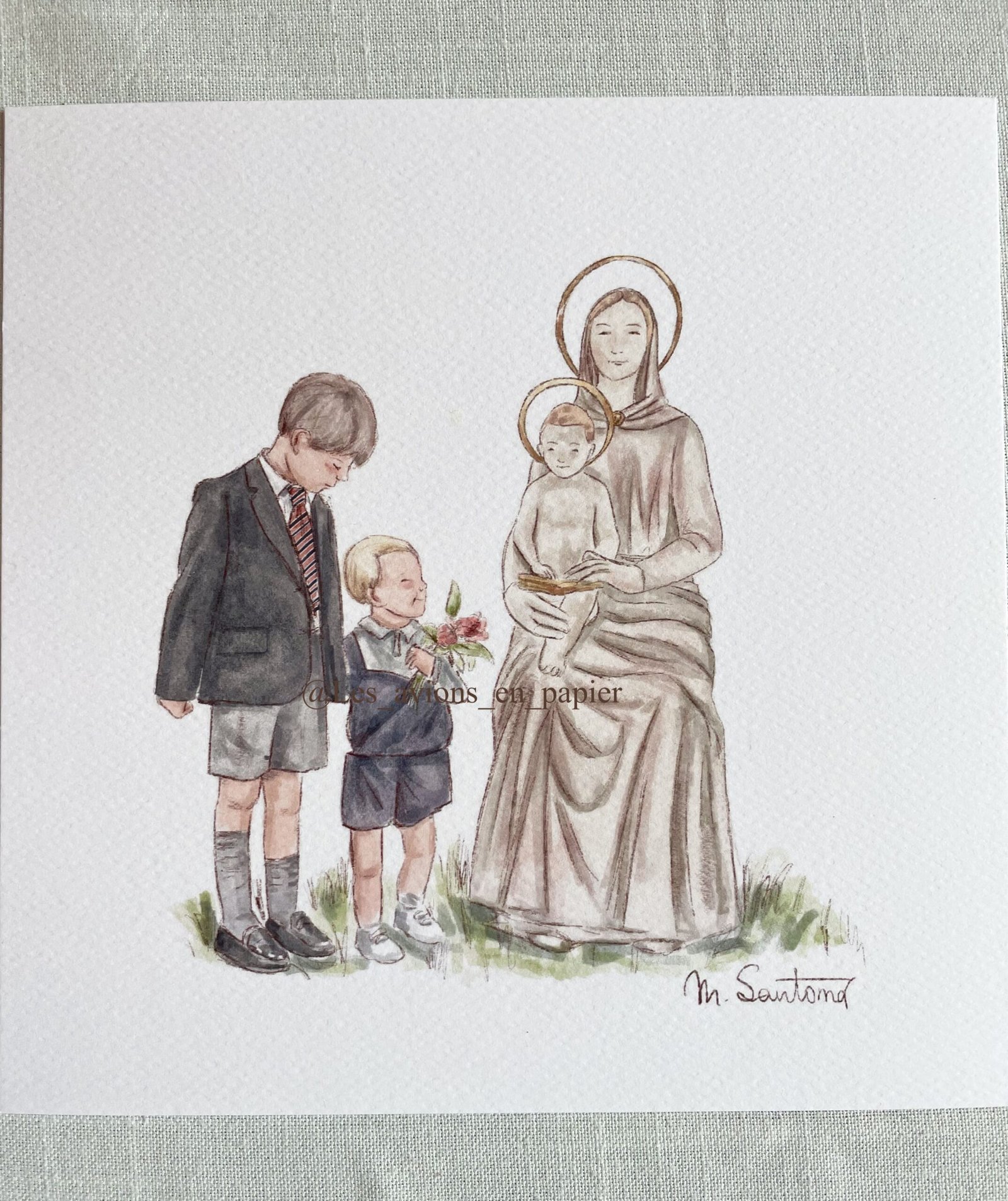Lámina con ilustración de niños con la virgen del colegio Viaró. Perfecto para decorar habitaciones, o para regalar en ocasiones especiales. Dale un toque de dulzura al cuarto de tus pequeños con esta lámina para enmarcar.