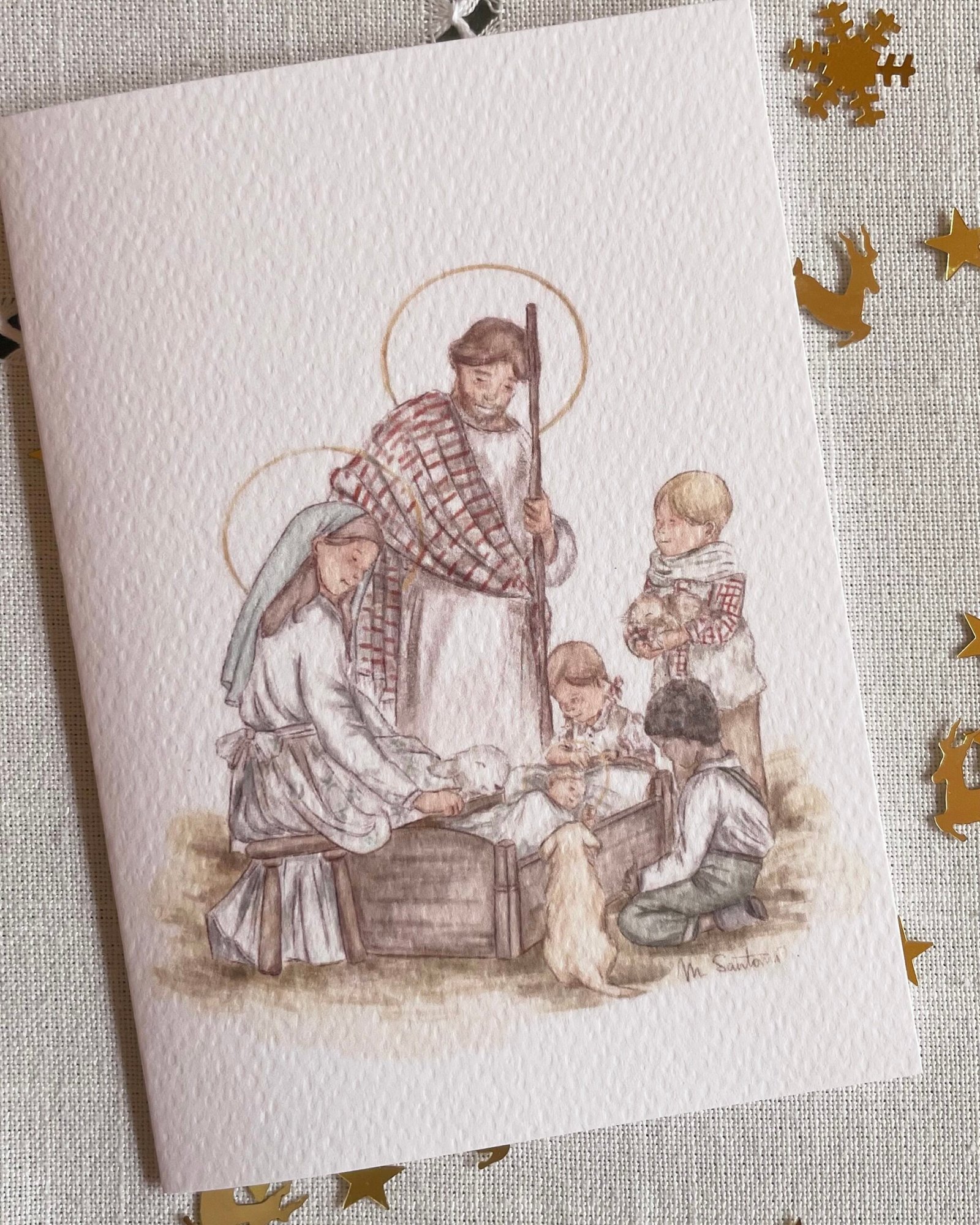 Este paquete de felicitaciones navideñas incluye 8 christmas con el diseño “Los Pastorcillos”, una ilustración exclusiva de @Les_avions_en_papier. Ideal para regalar a amigos y familiares o para quienes aprecian los detalles artísticos. Dale un toque auténtico y lleno de encanto a tus felicitaciones navideñas con estos christmas únicos.